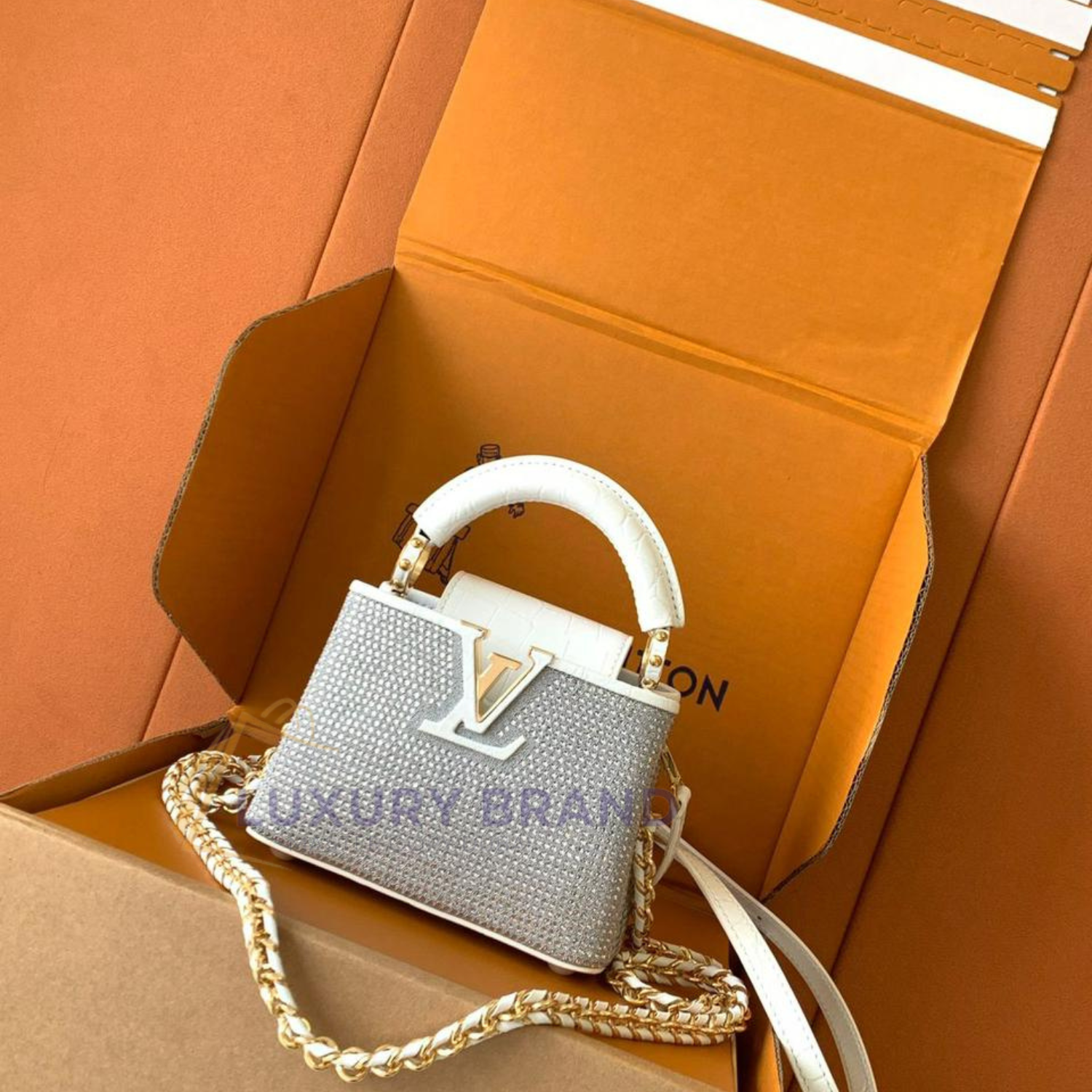 Embrace the height of refined elegance with the Louis Vuitton Capucines Nano Bag, recreated in unparalleled super master quality. This miniature masterpiece is a testament to impeccable craftsmanship and an eye for the most minute detail, mirroring the original design with breathtaking accuracy.