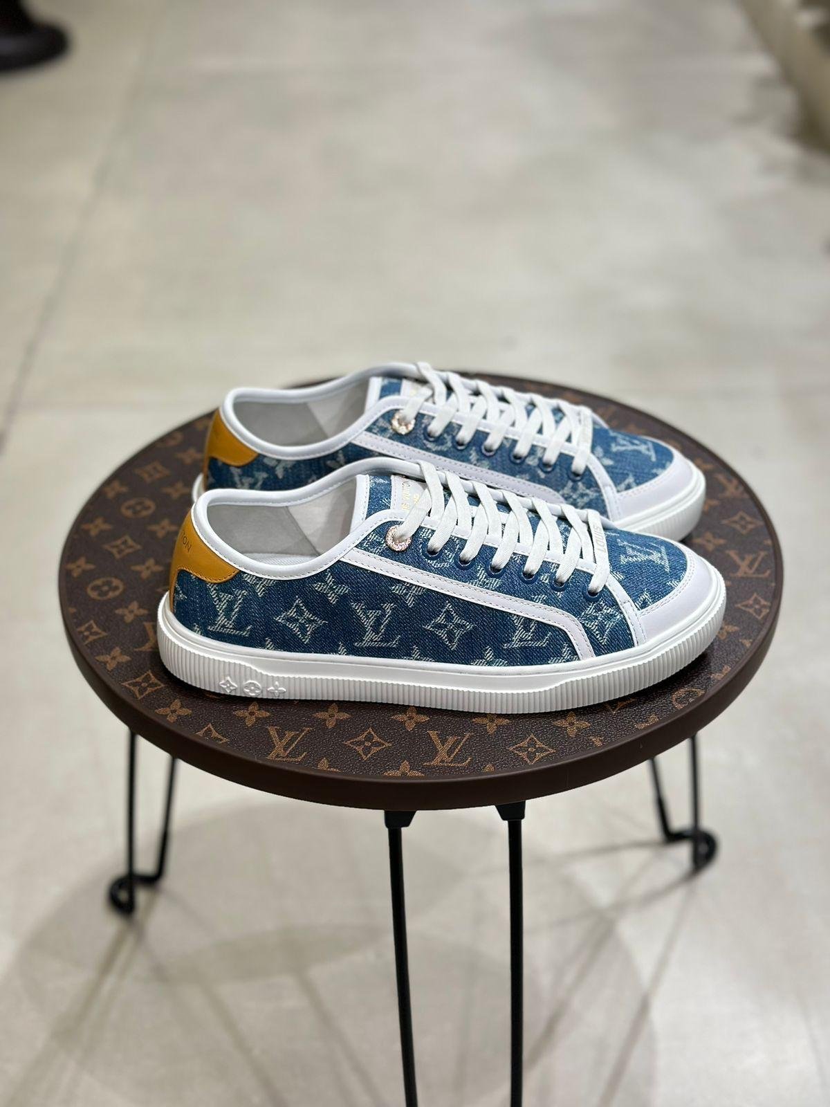 Elevate your style with the LOUIS VUITTON Lagoon Sneaker, a perfect fusion of contemporary streetwear and timeless luxury. Crafted from premium light blue denim canvas and accented with smooth calf leather trim, these sneakers feature subtle LV motifs and Monogram flowers, embodying the brand’s iconic elegance. The chunky yet lightweight rubber sole ensures all-day comfort, while the classic lace-up closure and pull tab at the heel offer both functionality and a secure fit. Designed for versatility, the clean silhouette pairs effortlessly with casual or elevated outfits. Each pair includes a dust bag, original box, and receipt, guaranteeing authenticity and a complete unboxing experience. Ideal for fashion enthusiasts seeking a rare and sophisticated addition to their collection .