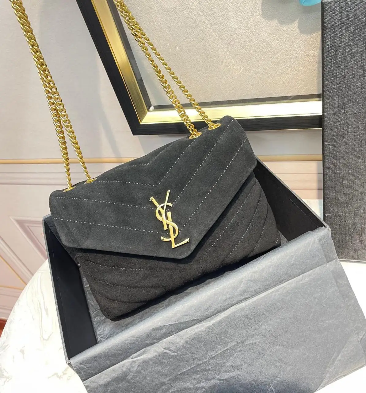 The Saint Laurent Loulou Small Shoulder Bag is the epitome of timeless elegance and modern sophistication. Crafted from luxurious, supple leather with a signature quilted chevron pattern, this iconic bag exudes effortless Parisian chic. The soft, slouchy silhouette is accented with a gleaming YSL logo on the front, adding a touch of glamour. Featuring a spacious interior with a zip pocket and slip compartments, it offers both style and functionality. The adjustable chain and leather shoulder strap allow for versatile wear—crossbody, shoulder, or handheld. Perfect for day-to-night transitions, the Loulou Small Shoulder Bag is a must-have for the fashion-forward woman.